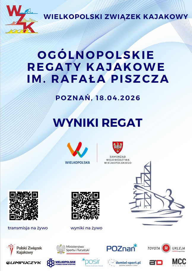 WYNIKI - Ogólnopolskie Regaty Kajakowe im. Rafała Piszcza -18-04-2026 Poznań Patryk Dziamski - 19/04/2026 - News, Wyniki - No Comments